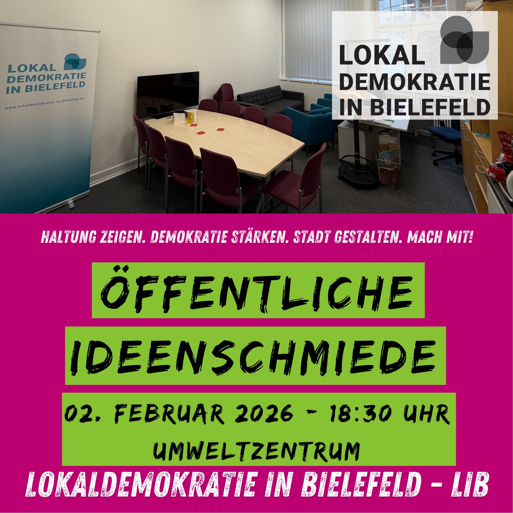 Du willst mitreden, mitdenken und mitgestalten? Dann komm zu unseren Ideenschmieden der Lokaldemokratie in Bielefeld (LiB)!
